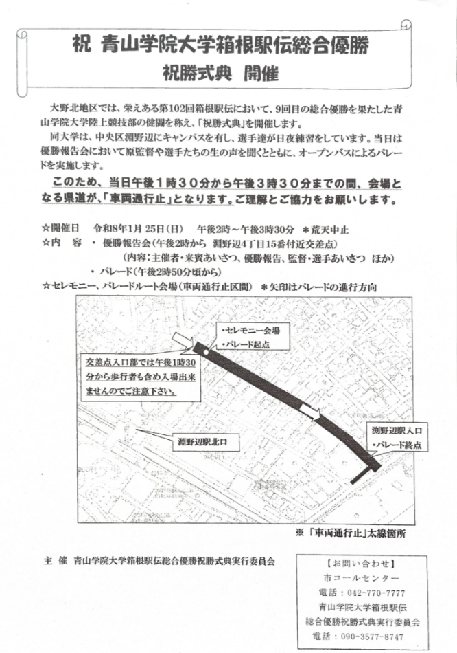 昨年に続き、今年も青山学院大学 駅伝部の皆さんが箱根駅伝にて見事 3連覇・総合優勝を果たされました。